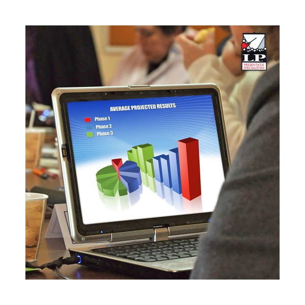 Laptop Basic. Standaard laptop met 15.4" beeldscherm (WXGA). Geschikt voor het afspelen van powerpoint presentaties, PDF's en filmpjes/audio.
