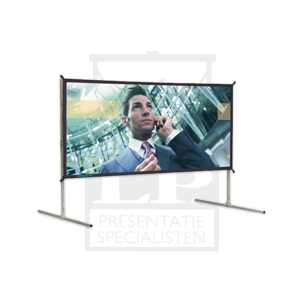 • 10cm zwarte rand • 16:9 verhouding • Opzichtdoek • Transportkoffer •